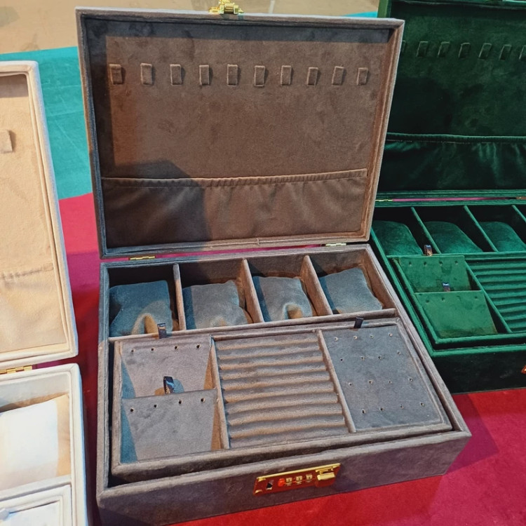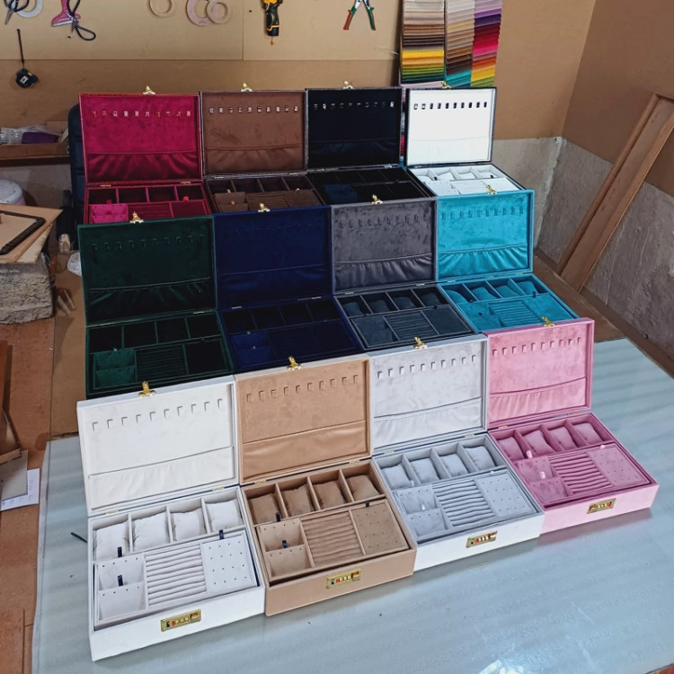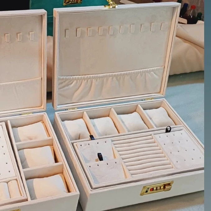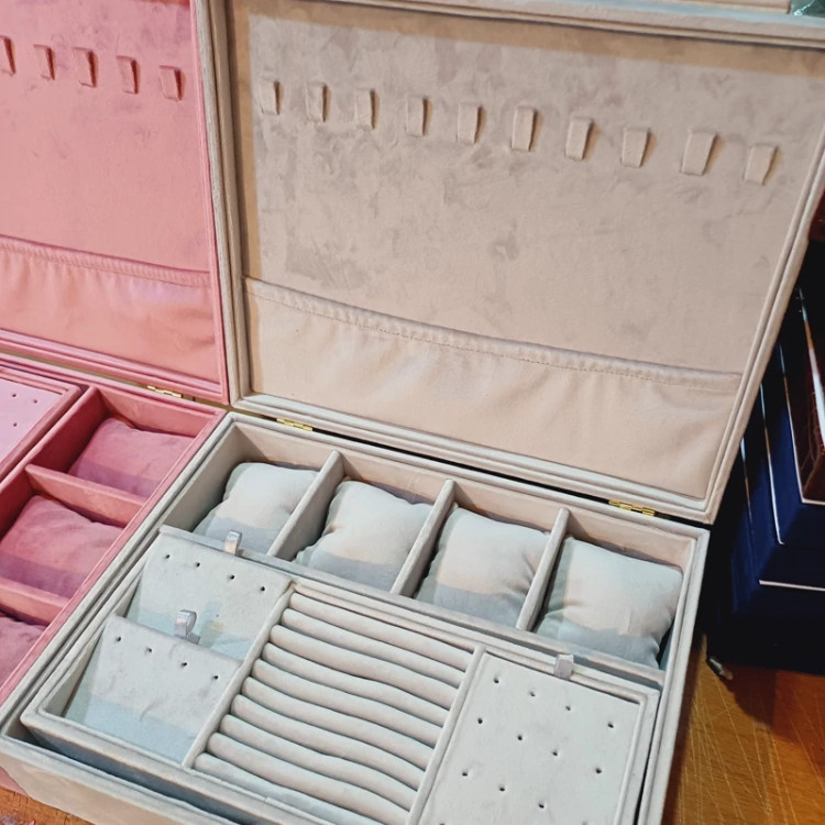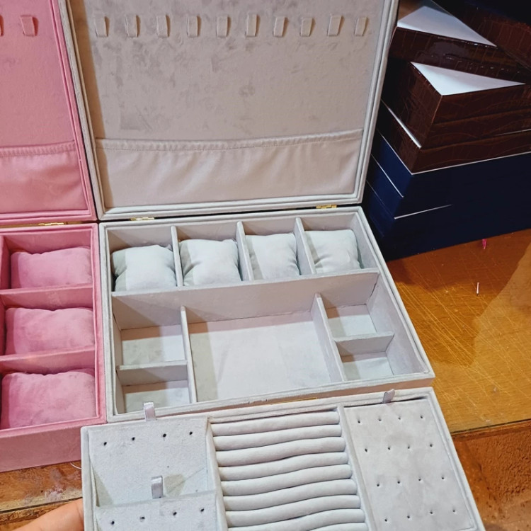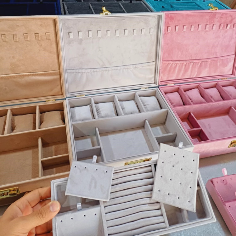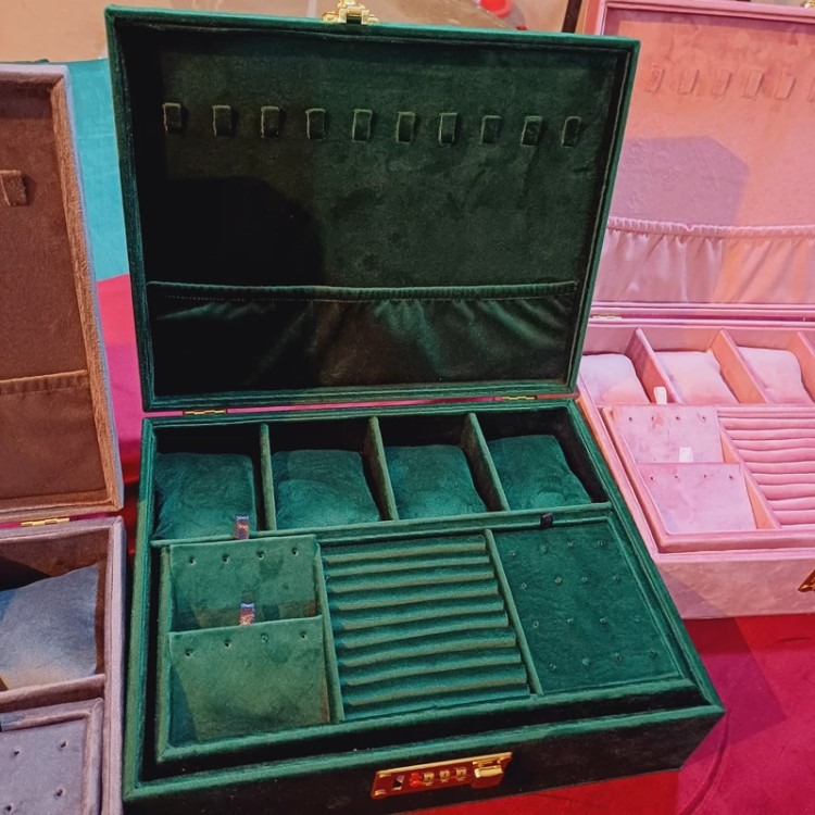 جعبه جواهرات دو طبقه روکش تمام مخمل